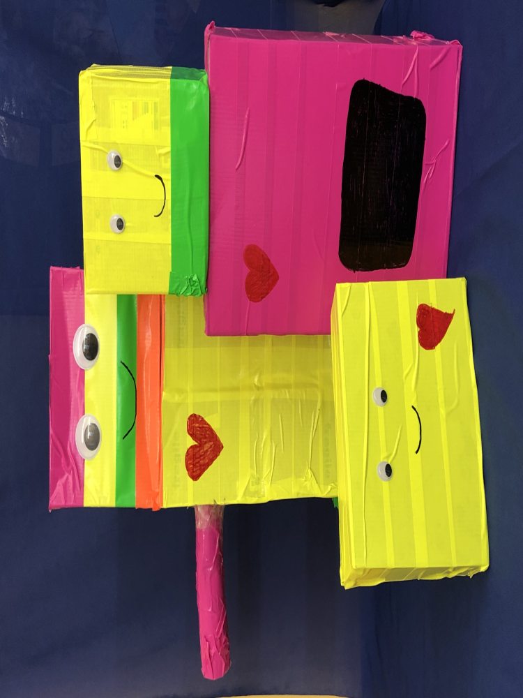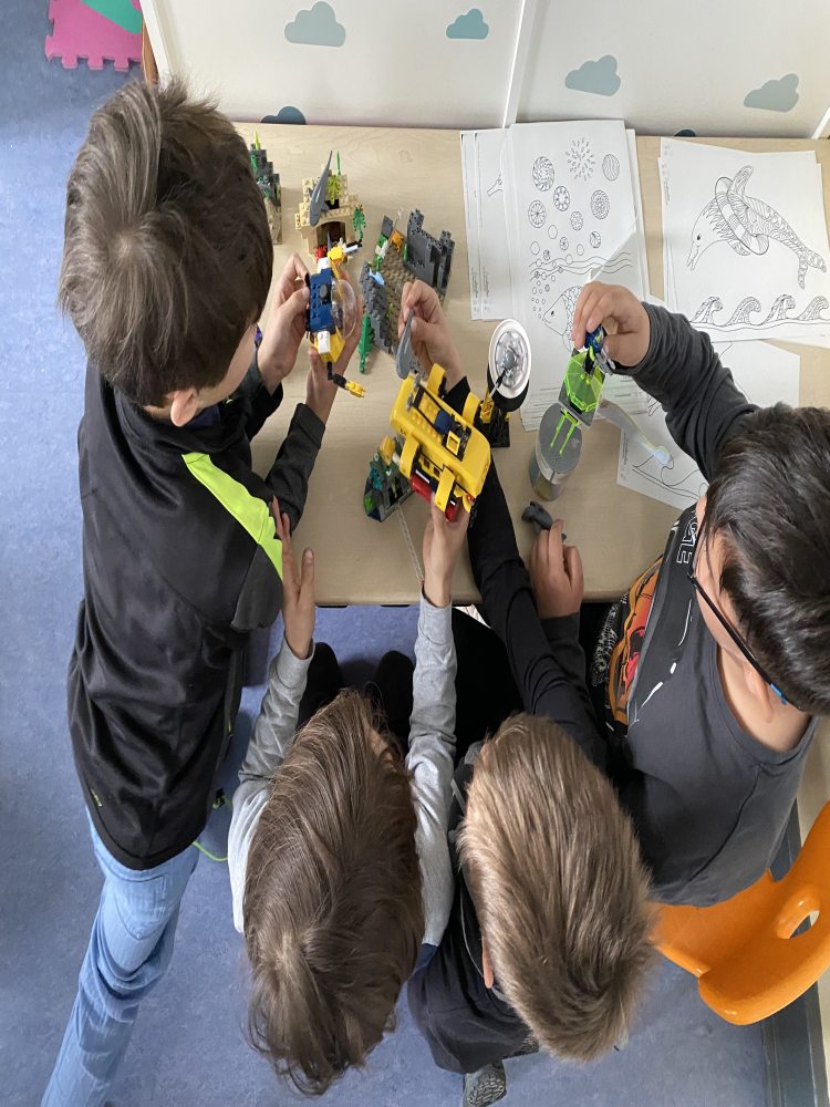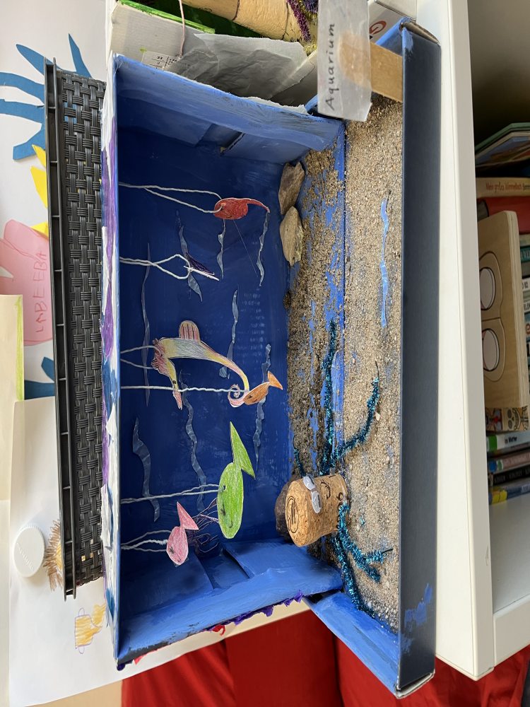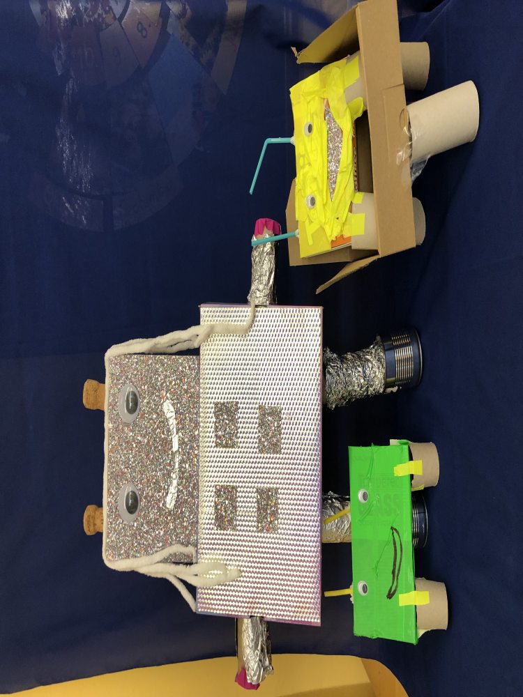Die Schülerinnen und Schüler lernten außerdem, wie man aus Naturmaterialien Farben selbst herstellt, verfilmten Märchen und zeichneten Comics. Glücklich und zufrieden nahmen die Kinder auch ihre selbstgestalteten Tischkicker und ihre eigenen Zoos jeweils im Schuhkarton sowie ihre eigenen Fahrzeuge mit nach Hause, die auch bereits mit mehreren Fahrten die Rampe hinunter getestet wurden. Auch Roboter wurden aus den unterschiedlichsten Materialien gebaut. Freitags fand beim Klassenlehrer oder der Klassenlehrerin ein gemeinsamer Abschlusstag statt, bei dem mit einer Feedbackrunde auf die vergangene Projektwoche zurückgeblickt wurde. Ein Video mit Fotos der verschiedenen Projekte rundete die Woche ab. „Wirklich toll, wie kreativ wir alle waren!“, freute sich Schulleiterin Sibille Krappel über eine rundum gelungene Projektwoche.