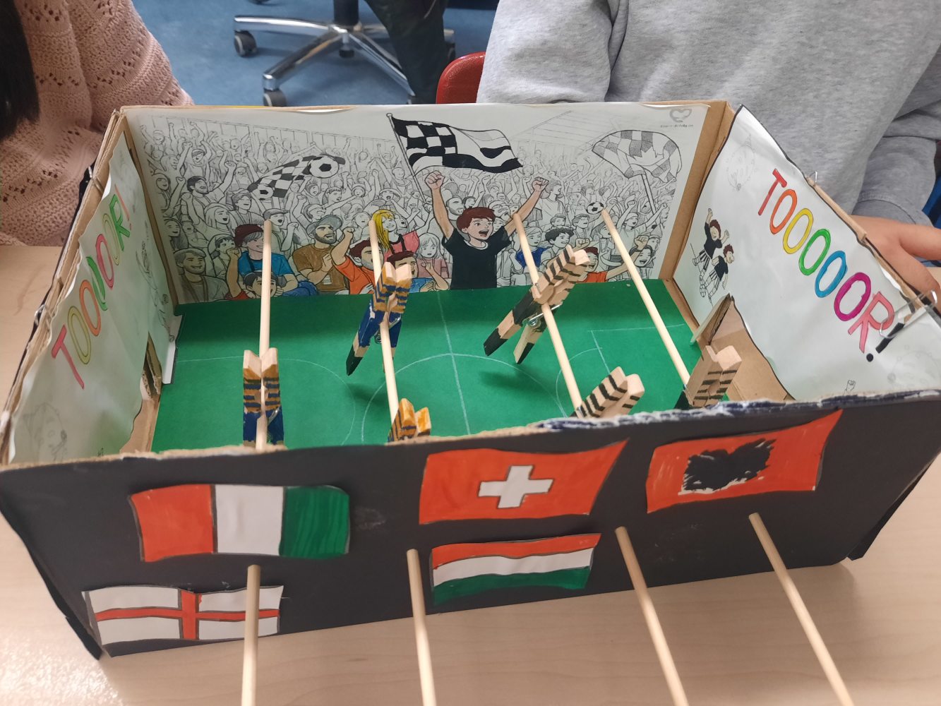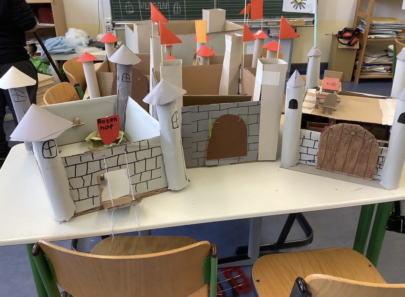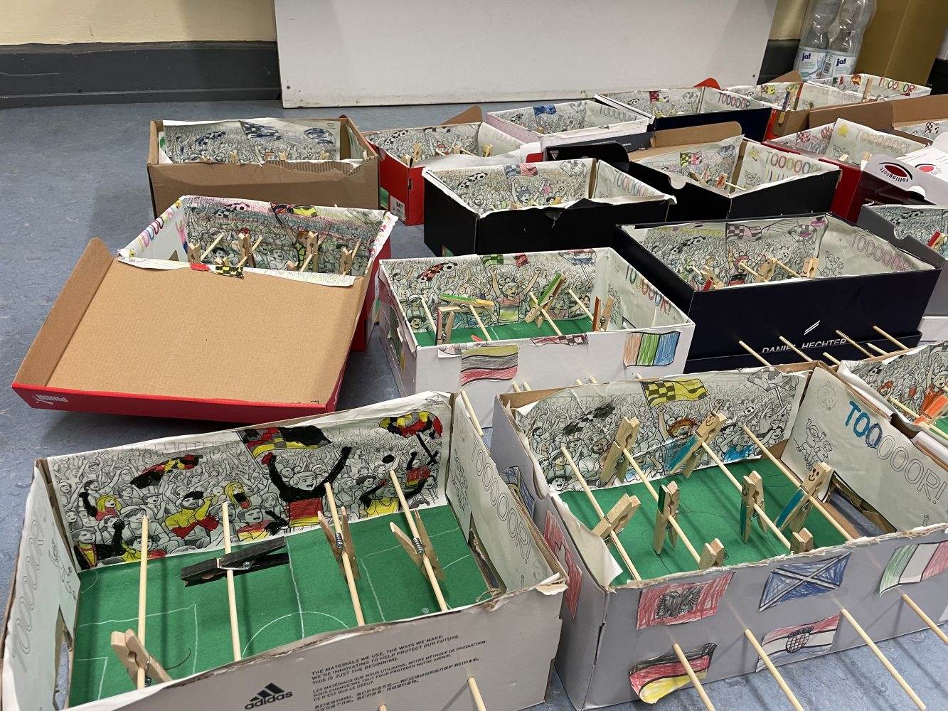 Die Schülerinnen und Schüler lernten außerdem, wie man aus Naturmaterialien Farben selbst herstellt, verfilmten Märchen und zeichneten Comics. Glücklich und zufrieden nahmen die Kinder auch ihre selbstgestalteten Tischkicker und ihre eigenen Zoos jeweils im Schuhkarton sowie ihre eigenen Fahrzeuge mit nach Hause, die auch bereits mit mehreren Fahrten die Rampe hinunter getestet wurden. Auch Roboter wurden aus den unterschiedlichsten Materialien gebaut. Freitags fand beim Klassenlehrer oder der Klassenlehrerin ein gemeinsamer Abschlusstag statt, bei dem mit einer Feedbackrunde auf die vergangene Projektwoche zurückgeblickt wurde. Ein Video mit Fotos der verschiedenen Projekte rundete die Woche ab. „Wirklich toll, wie kreativ wir alle waren!“, freute sich Schulleiterin Sibille Krappel über eine rundum gelungene Projektwoche.