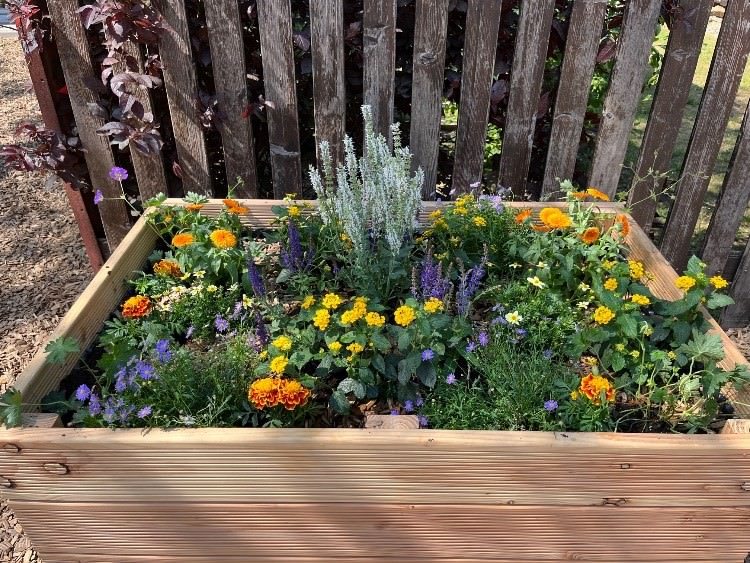 Nachdem sowohl Hochbeet als auch Insektenhotel (jeweils ein Fertigbausatz, gespendet von der VR Bank) in Gruppenarbeiten aufgebaut wurden, beschäftigten sich die Kinder mit der Befüllung des Insektenhotels und gleichzeitig mit den verschiedenen Schichten in einem Hochbeet. Hilfreich war dabei entsprechende Literatur (ausgeliehen aus der Stadtbücherei) und das Internet. In Kleingruppen wurde dann in Schulnähe das entsprechende Material beschafft (Tannenzapfen, Weizenhalme, Stroh, etc.). Zusätzliches Material konnte noch hinzugekauft werden. Den Kindern war besonders wichtig, das Hochbeet bienenfreundlich zu bepflanzen, um den gefährdeten Tieren Nahrung zur Verfügung zu stellen. Deshalb haben die S.u.S. im Internet entsprechende Pflanzen/ Blumen recherchiert und anschließend besorgt. Dabei konnten die Kinder zusätzlich praktische Kenntnisse über Pflanzen und ihre Lebensgrundlagen gewinnen. Die Pflege des Hochbeetes (Gießen, verblühte Blüten entfernen, etc.) und des Insektenhotels (z.B. Spinnweben entfernen) wird weiterhin von der Klasse 4c bis zum Ende des Schuljahres fortgeführt. Im nächsten Schuljahr soll dann eine andere Klasse im Rahmen eines Projektes diese Pflege weiterführen.