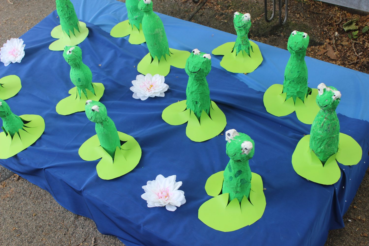 Der Gewerbeverein nahm das Schulfest zum Anlass, die Sieger des Malwettbewerbs unter dem Motto „Wir malen uns Sandhofen bunter“ zu ehren. Cassandra, Amelie und Leon belegten das Siegertreppchen der Klassen eins und zwei. Für den Jahrgang drei und vier bekamen Luise, Lea und Gabriel von den Vorsitzenden des Gewerbevereins Reinhard Steinfurth und Bettina Herbel tolle Preise überreicht. Passend zum Motto „Tierisch gut!“ gab es am Nachmittag eine große Vielfalt an Spiel-, Bastel-, Bewegungs- und Sinnesangeboten für die Kinder zu erleben und auszuprobieren. So luden unter Anderem „Sportliche Tiervergleiche“, die „Affensuche im Dschungel“, das „Gefährliche Tiere abtreffen“, „Nilpferde füttern“, „Lustige Froschspiele“, „Enten angeln“ und eine „Unterwasserwelt“ auf dem Schulhof und in den Klassenzimmern im Erdgeschoss zum Mitmachen und Bewegen ein. Zudem war die Kreativität der Kinder gefragt: Ob beim tierische Schneekugeln, Schleuderbienen oder Glückskäfer Herstellen, tierische Magnete, Tiermasken oder Tierlesezeichen basteln oder Origami falten – für jeden war ein passendes Angebot mit dabei, bei dem tolle, farbenfrohe Ergebnisse entstanden, die auch mit nach Hause genommen werden durften.